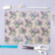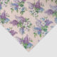 Bonito papel pintado de época con un diseño floral compuesto por lilas moradas y lavanda y flores blancas y azules sobre un fondo morado rosa claro