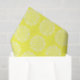 Esta mandala blanca se sienta sobre un fondo amarillo limón. Los colores son alegres y tranquilos. Parte de la colección Erghenn Mandala.