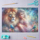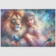 Un diseño encantador con una niña adorable abrazando su majestuoso compañero de león en medio de un paisaje místico. Cerca de los dulces amigos se encuentran coloridos pájaros voladores. El tejido llora limpiamente para una colocación precisa en un trabajo detallado de desacoplamiento en keepsakes con tesoros. Los hermosos colores siguen siendo ciertos incluso con múltiples aplicaciones adhesivas, preservando la conexión emocional representada. Perfecto para crear piezas que evocan sentimientos de asombro e imaginación de la infancia. ¡Explora diseños de fantasía más deliciosos en mi captación de papel de tejidos fantásticos!