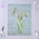 Elegante y moderno fondo vintage, con obras de arte de color azul gris con ilustraciones botánicos verdes. Impresionante arte de descomposición vintage.