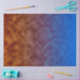 Este diseño se siente como el momento entre la luz del fuego y el anochecer. Por un lado, los tonos cálidos de las brasas —naranja quemado, cobre y óxido profundo— brillan con una intensidad silenciosa. A medida que la vista se desplaza, esos colores se suavizan en un ciruela crepuscular y finalmente se asientan en un azul tranquilo y expansivo, como el cielo después de que se desvanece la última luz.