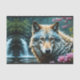 Papel De Seda Lobo parado en un río con flores