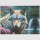 Lobo gris parado en el río con flores rosadas AI Arte generado por minx267