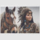 Majestic Horse And Young Native Woman Fantasy Portrait Tissue Paper.