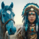 Majestic Horse And Young Native Woman Fantasy Portrait Tissue Paper.