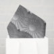 Papel seda en un modelo abstracto de la mandala en una pendiente del satén de los discos traslapados que se centran alrededor de una rueda spoked de las estrellas - sombras del gris de plata/del gris ligeros al gris del grafito