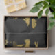 Perfecto para el viajero mundial, este mapa bonito y moderno del continente global está lleno de purpurinas de oro. El texto dice que deje que comience la aventura y este texto puede ser editado o eliminado, según sus preferencias. La imagen y el texto están en un elegante fondo negro.