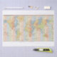 Este diseño presenta un mapa de dominio público del mundo con las zonas horarias estándar para cada región codificada por colores. Se muestran veinticuatro husos horarios, y también se enumeran zonas horarias no estándar de media hora. El mapa muestra todos los principales países del mundo: muestra los continentes de Asia, África, Norteamérica, Sudamérica, Europa y Australia. La zona horaria de Universal Time Coordinated (UTC) se muestra en el centro del mapa, mientras que las zonas horarias anteriores se muestran a la izquierda y las zonas horarias posteriores se muestran a la derecha.