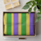 Papel tisular de Mardi Gras Stripes Colors Este papel de tira rayada de color audaz, púrpura, dorado y verde está bellamente creado para él o su embalaje de regalo. Perfecto para eventos y cumpleaños del Martes Gordo / Mardi Gras. El verde es para la fe, el oro representa el poder y el morado representa la justicia. Por celeste@khoncepts.com
