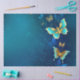Oro volador, mariposa de joyas sobre fondo textural azul. Diseño con mariposas.