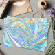 Un diseño elegante y moderno de oro fino y brillante, azul y tonos de agua, todo ello mezclado con un efecto de mármol líquido/pintura. Esta obra de arte fue hecha para dar la sensación de geodésicos y mármol, o una pintura líquida para el arte.