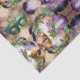 Este es un elegante y divertido papel de tejido con máscara de Mardi Gras, plumas y objetos decorativos sobre un fondo de aceite de tinta. Los colores utilizados en el diseño son los colores tradicionales del Mardi Gras, morado, verde y dorado. Este papel tisular es perfecto para envolver regalos para varias ocasiones o para usarlos en proyectos de desacoplamiento.