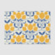 Add Mediterranean fruit vibes to your crafts and party supplies with this tissue paper featuring botanical lemons arranged on cobalt blue scallop shapes