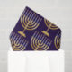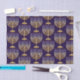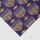Patrón de menorá judía con velas en papel de regalo de fondo azul.