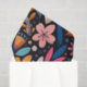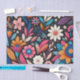 Un caleidoscopio de flores en vivos tonos de joyas (coral, cobalto, canario y ciruela) irradia a través de un fondo negro dramático en un arreglo floral espejado. Audaz y romántico, esta huella simétrica del jardín le da elegancia a cualquier decoración o diseño de regalo.