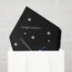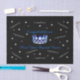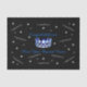 Este papel de tejido se muestra con una huella de celebración de estrellas, felicitaciones de menor tamaño esparcidas por todas partes en gris suave sobre un fondo negro con una mayor congratación azul turquesa y una estampación de corona brillante azul. Debe personalizar este elemento con su título o nombre.