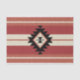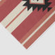 Modelo bohemio étnico azteca con formas geométricas en colores rojos, anaranjados, grises y negros en fondo rayado