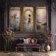 Pase por un jardín encantado donde los colibríes revolotean entre cosmos púrpuras y flores silvestres brillantes, y una suave luz dorada atrae desde el extremo lejano de un camino sinuoso. Este panel luminoso de la colección Delicate Moments está enmarcado en un borde rectangular dorado ornamentado con intricados trabajos de pergamino, dando la impresión de mirar hacia un mundo secreto y soleado.