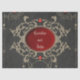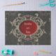 Momentos dorados de amor. El diseño desprende una elegancia oscura que llama la atención inmediatamente. Tiene un motivo circular central con un fondo rojo profundo que crea un ambiente apasionado y romántico. En el medio del círculo están las siluetas de una novia y un novio que adorablemente sostiene globos de corazón -un símbolo de amor y alegría. Dentro del círculo, el texto "Mr & Mrs." está estampado en una fuente elegante, celebrando la conexión de la pareja y la vida juntos. El círculo está enmarcado por delicados adornos dorados que le dan un toque de lujo al diseño. Estos detalles ornamentales atraen la atención y crean un aura opulento.