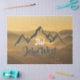 Monograma de montañas personalizables de amanecer dorado. Montañas dibujadas por vectores de color azul gris con un monograma personalizable y tu nombre. Como telón de fondo un impresionante amanecer dorado con niebla en el valle y rayos solares. Un gran regalo de alguien que ama las montañas.
