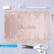 Un fondo con apariencia metálica de oro rosa con gotas de purpurina falsa y efecto de pintura que gotea. Personaliza y añade un nombre. El nombre está escrito con una fuente moderna de letra manuscrita. Para regalos de cumpleaños, despedidas de soltera y baby showers.
