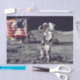 Eugene A. Cernan saluda la bandera en la Luna, Módulo Lunar Challenger detrás de la bandera, Vehículo Rodante Lunar detrás de Cerman, Apolo 17, 1972.