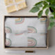 Add a soft, whimsical layer to your gift wrapping with this pastel rainbow tissue paper. Featuring a repeating grid of stylized rainbows in muted tones of pink, mustard yellow, and green, this design pairs beautifully with gift bags, boxes, or wrapping paper. The subtle texture and gentle palette make it perfect for baby showers, birthdays, or everyday gifting with a modern twist.