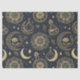 A mesmerizing celestial witchcraft seamless pattern tissue paper showcasing intricate gold line art of potion bottles, moon phases, constellations, and magical botanicals on a deep black background. This elegant blend of nature and cosmic alchemy captures a mystical, witchy aesthetic perfect for celestial lovers, Halloween, or boho lover.
