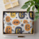 Vestir sus regalos con este encantador papel de tejido de calabaza! El diseño se caracteriza por una estampa festiva de farolillos clásicos en tonos naranja y azul oscuro, repartidos entre estrellas y follaje llamativos. Es la manera perfecta de añadir un toque de encanto rústico de Halloween a cualquier bolso de regalo o caja.