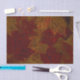 Las hojas de arce oscuro del naranja rojo otoñal caen sobre papel de tejido de desacoplamiento artesanal. Derechos de imagen de Marg Seregelyi Photography.
