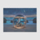 Una imagen de fantasía de un caballito de mar y una estrella de mar, en su entorno submarino, en un orbe en una hermosa playa. Las estrellas y la luna están afuera. ¡Añade interés a tu envoltura!