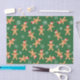 Hombres de pan de jengibre en un papel de tejido de Navidades verdes.