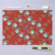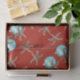 Rojo, papel de tejido Navidad con diseño de pez estrella y adornos. Las estrellas del mar marrón y los adornos azul acuático hacen un divertido patrón de Navidades tropicales y coinciden con nuestro papel de envoltura.