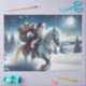 Navidades, Santa Claus, caballo blanco, paisaje nevado, escena de invierno, temporada de fiestas, entrega de regalos, fiesta, noche de luna, árboles de Navidad, tierra cubierta de nieve, magia de vacaciones, Santa a caballo, Navidades de la Víspera, paseos de invierno. La imagen muestra una escena de invierno festiva en la que Santa Claus monta un caballo blanco a través de un paisaje nevado. Santa está vestido con su traje tradicional rojo y blanco y lleva un gran saco lleno de regalos envueltos. El fondo muestra árboles cubiertos de nieve y una luna llena que ilumina el cielo nocturno. Los pájaros vuelan a lo lejos, lo que aumenta la atmósfera mágica de la temporada de vacaciones. La imagen capta la esencia de los Navidades y la emoción de la entrega de regalos en la víspera de los Navidades.