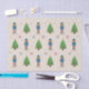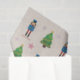 Un papel de tejido Navidad con un ilustracion de un patrón de Nutcracker, Árboles de Navidad y algunas estrellas con un fondo marrón claro. ¡Perfecto para decorar tus regalos de Navidad!
