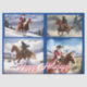 Este divertido diseño de Navidades muestra a San Nicolás y otros vaqueros montando en la nieve.