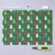 Papel de discusión con patrón de Navidades de tenis 💔 verdes, rojos y blancos. Chaquetas de tenis, pelotas de tenis y árboles de Navidad con fondo verde.