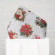 Elegante y de moda perfecta para las vacaciones florales con ramos de poinsettias rojas y blancas, holly y pino sobre un sutil adamascado gris y blanco.