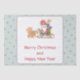 Escena festiva con Santa, su trineo y dos renos. Personalice este texto de papel de tejidos vacacionales a su gusto.