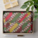 Filas de lindos personalizados Santas de todo el mundo sobre un fondo geométrico de colores brillantes listos para agregar ese toque especial a tus regalos! Se puede modificar el color de fondo. Ilustracion original de Linda Becker.