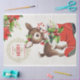 Pequeño ciervo dulce con caña de caramelo, bota y flores de Navidad.
