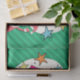 El diseño presenta el lindo Santa Claus "Ho, Ho, Ho" sobre un fondo rayado en diagonal verde.