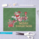 Estas hojas de papel de tejido son de color verde oscuro con un tren de Navidades rojos y blancos con Santa Claus con ruedas de caramelos de menta con letras a Santa y latas de dulces con el texto Feliz Navidad en Oro.