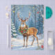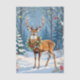 Un papel de tejidos de vacaciones muy dulce con un ciervo festivo parado en un bosque de invierno festivo encantado decorado con Navidades divertidos!