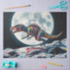 Papel De Seda Neon Dinosaur Raptor Moon Decoupage Paper