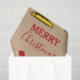 Un lindo ilustracion de una excavadora de juguetes amarillos con sombrero de Papá Noel y decorada con Navidades, ilumina algunos regalos de Navidades con palabras "Feliz Navidad" y tu nombre personalizado en un papel marrón kraft se ve de fondo. Perfecto para los amantes de los camiones de construcción de todas las edades. Un papel higiénico ideal para Navidades para los entusiastas de camiones excavadores grandes o pequeños, chicas o niños. Personalizar el nombre y hazlo propio.
