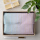 Papel de tejido con un patrón abstracto genial. Gradiente pastel en colores rosa y azul con rayas de oro finas. Las franjas/líneas de oro son falsas purpurinas de oro.