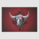 Orgullo y fuerza, un toro americano con una bandana de bandera. El toro tiene un rostro blanco llamativo, impactante en su descripción detallada y realista. Su nariz negra contrasta marcadamente con su piel blanca, mientras que sus cuernos largos y blancos se elevan majestuosamente hacia arriba, lo que le da al animal una presencia poderosa. El toro lleva una bandana con la bandera estadounidense encima de los ojos, imbuyendo la imagen de una expresión patriótica y orgullosa. La interacción del realismo y el diseño simbólico transmite fuerza, coraje y solidaridad nacional.