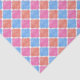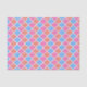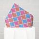 Ornately patterned diamond checked tissue paper in orange, pink and blue.
