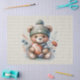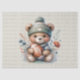 Papel de tejido personalizado con texto que se puede personalizar. Diseño moderno con flores y un oso lindo sosteniendo un fútbol. Fondo de color crudo. Feliz saludo de Navidad pero también puedes personalizar el texto con tu nombre o frase deseada. Utilice la plantilla para crear su propio papel de tejido personalizado.